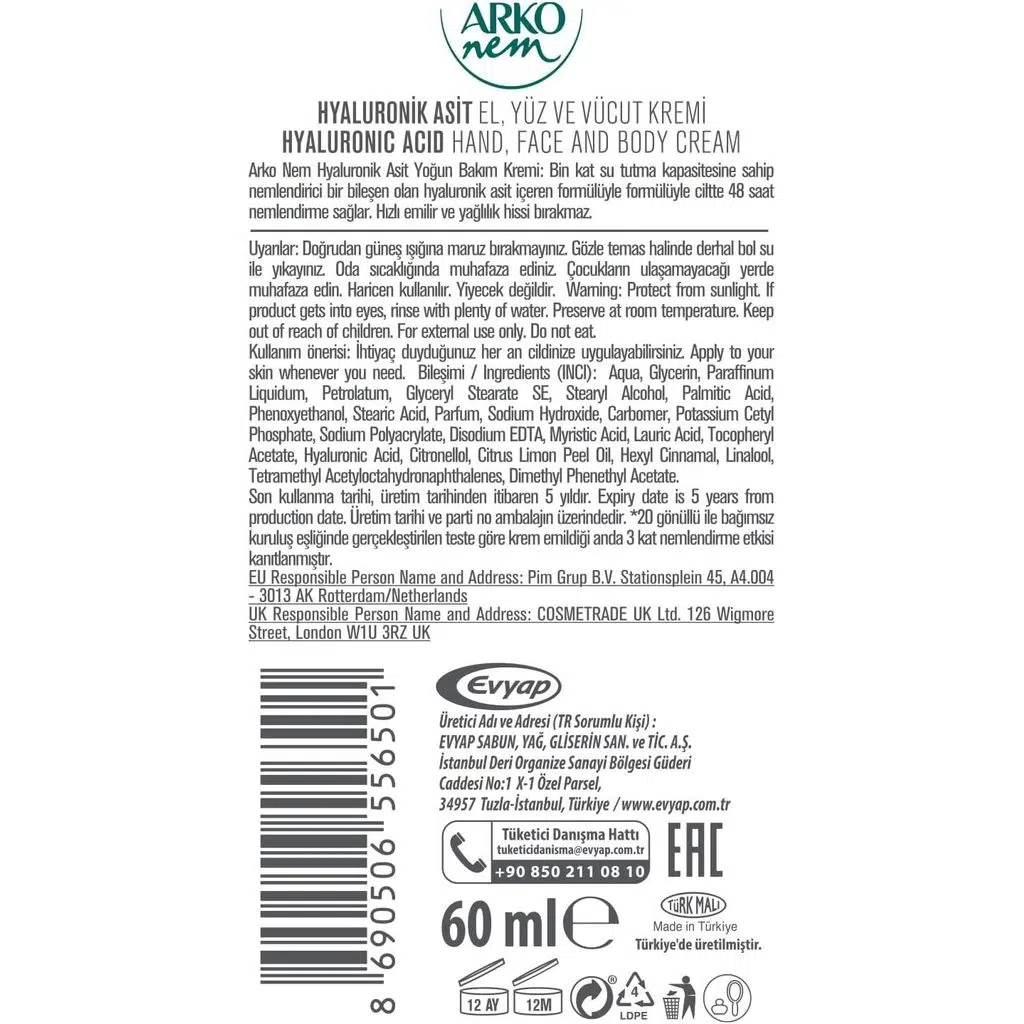 | Etiketler | Arko Nem Hyaluronik Asit Yoğun Bakım Kremi 60 ml |