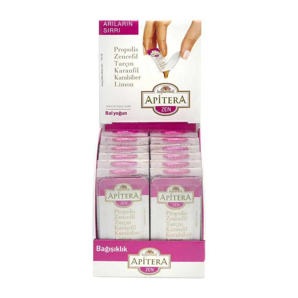 Balparmak Apitera Zen, soğuk ya da sıcak havalarda bağışıklık sisteminizi destekleyen, doğal ve zengin içerikli bir takviyedir. Yeni ambalajıyla bu sağlıklı ve lezzetli ürünü deneyimleyin ve vücut sağlığınıza katkıda bulunun.