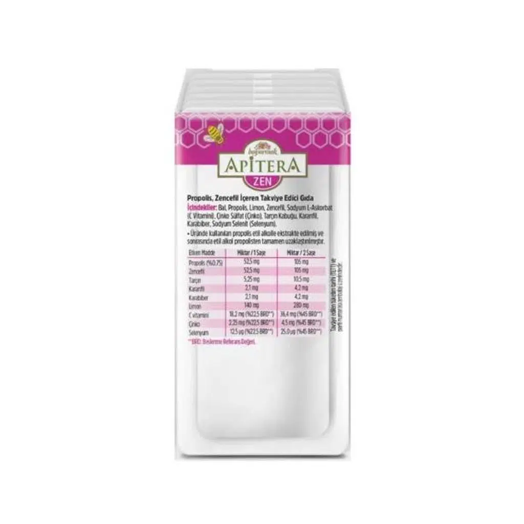 Balparmak Apitera Zen – Propolis, Zencefil + Bal, Tarçın, Karanfil, Karabiber, Limon, C Vitamini, Çinko, Selenyum içeren takviye edici gıda
