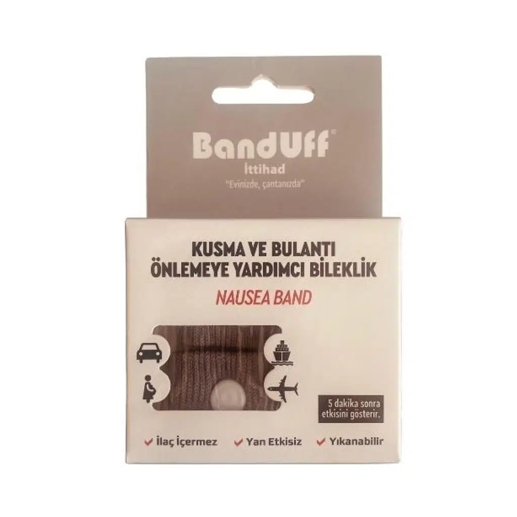 Banduff kusma ve bulantı önleyici bileklik, doğal akupresür tekniğine dayalı olarak mide bulantısını azaltmaya yardımcı olur. Özellikle taşıt tutması, mide bulantısı, seyahat rahatsızlıkları, hamilelik kaynaklı bulantılar ve deniz tutması gibi durumlarda kullanılır. İlaç içermez, yan etkisi yoktur. Gri renkteki bu model yetişkin bileğine uyumlu olarak tasarlanmıştır.
