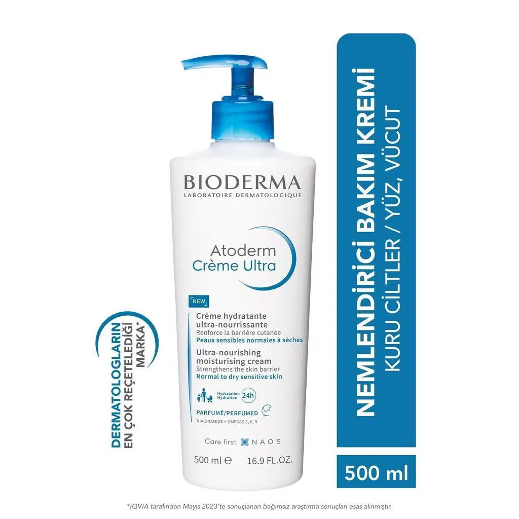 Bioderma Atoderm Creme Ultra, kuru ve hassas ciltlerin günlük bakımında etkili bir nemlendirme ve koruma sağlar.