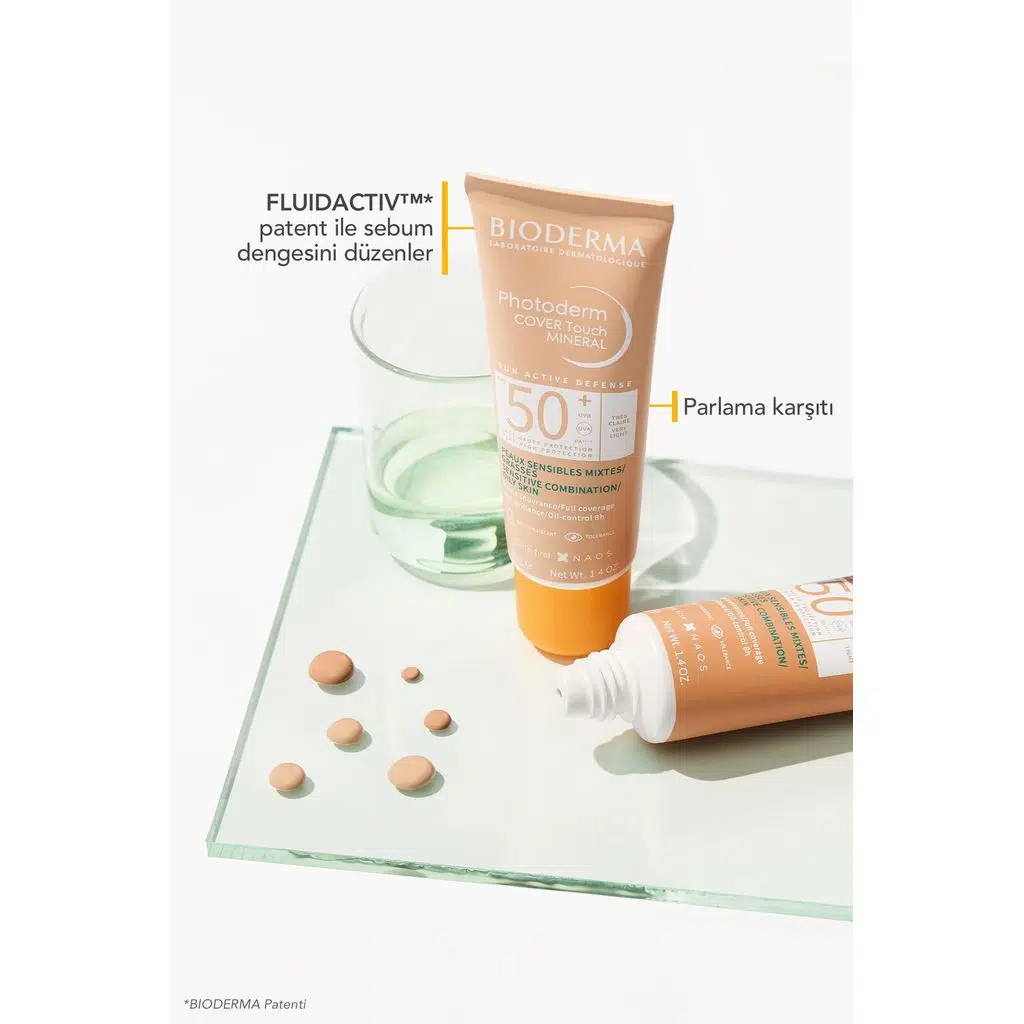 Bioderma Photoderm Cover Touch Mineral SPF50+, yağlı ve karma ciltler için geliştirilmiş, %100 mineral filtre içeren yüksek koruma sağlayan güneş koruyucu bir fondöten alternatifi olarak öne çıkmaktadır. Fluidactiv™ Patenti sayesinde cildin yağ ve sebum dengesini düzenlemeye yardımcı olurken, matlaştırıcı etkisiyle gün boyu parlama kontrolü sağlar.