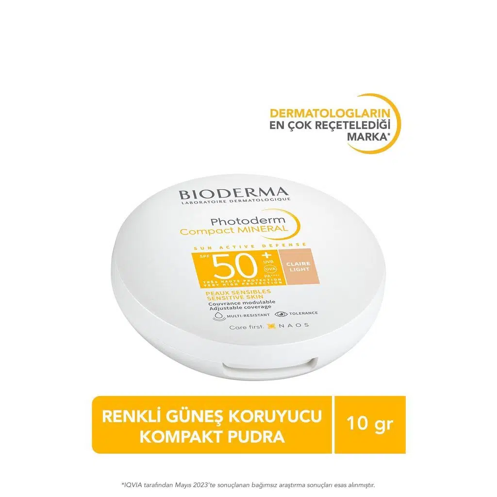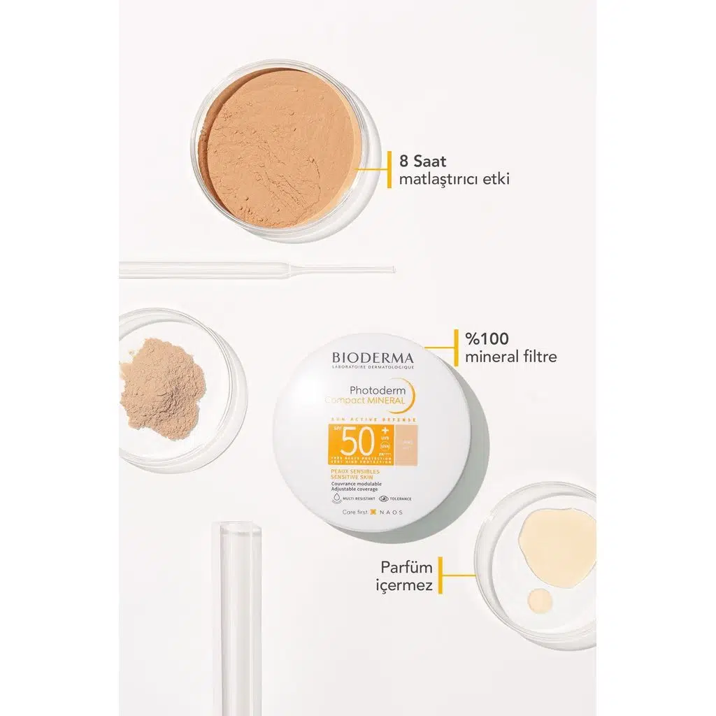 Bioderma Photoderm Compact Mineral SPF50, %100 mineral filtre içeren, yüksek güneş koruma sağlayan, cilt tonunu eşitlemeye yardımcı ve kapatıcılık sunan kompakt formda bir güneş koruyucudur. Güneşe karşı hassas, düşük toleransa sahip ve renkli koruma arayan ciltler için özel olarak geliştirilmiştir.