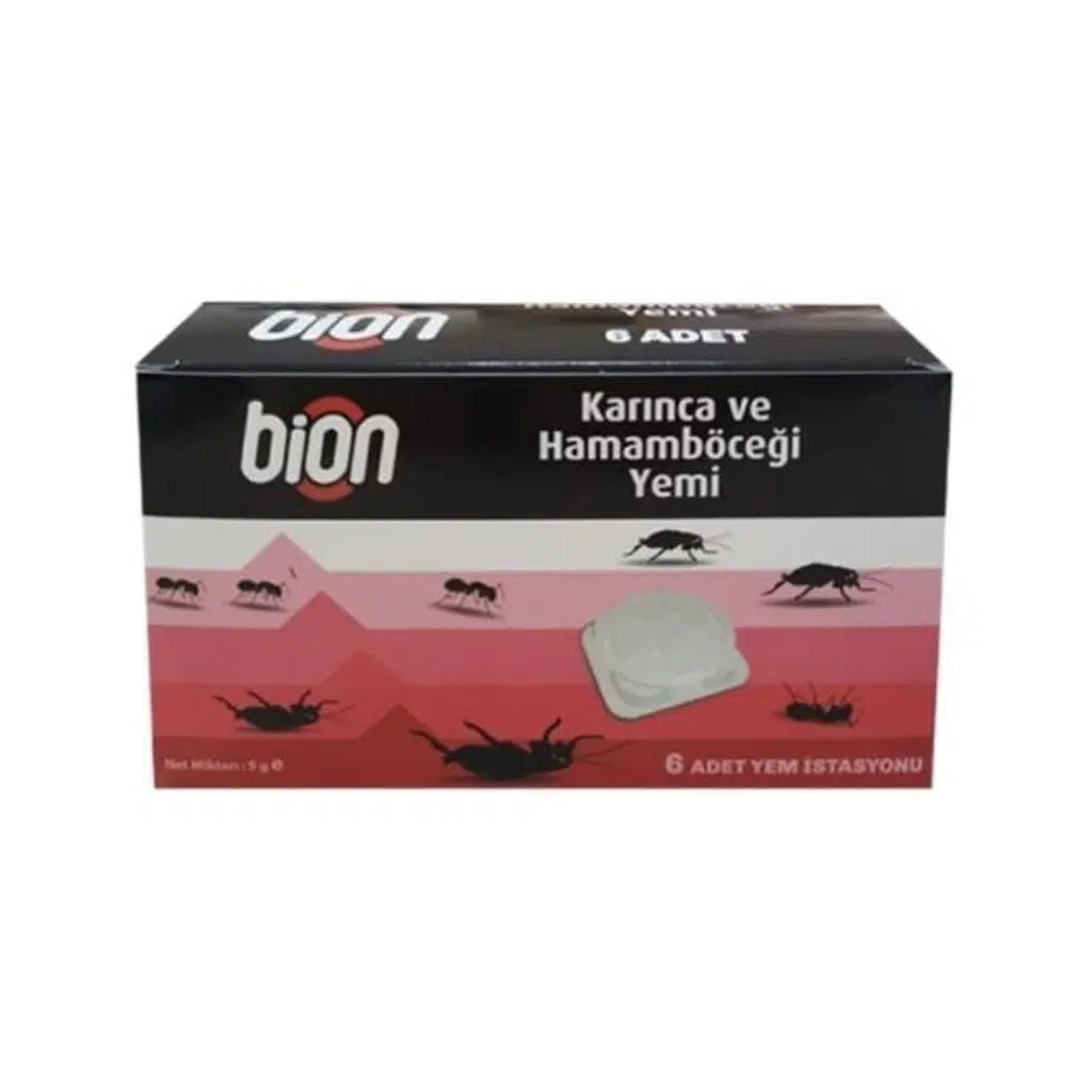 Bion Böcek Yemi, ev ve iş yerlerinde sıkça karşılaşılan hamam böceği ve benzeri yürüyen haşerelere karşı etkili mücadele sunar. Özel olarak formüle edilmiş yem içeriği, böcekleri kendine çeker ve tüketimini sağlar. Böcek tarafından yendikten sonra etkisini göstererek hem bireysel hem de kolonisel (domino etkisi) mücadele sağlar. Kullanıma hazır 6 adet yem kabı ile pratik ve hijyenik bir çözümdür.