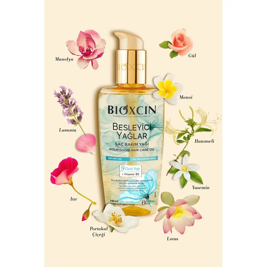Bioxcin Besleyici Yağlar Serisi kapsamında geliştirilen bu özel bakım yağı, kuru ve yıpranmış saçları derinlemesine nemlendirir, besler ve güçlendirir.