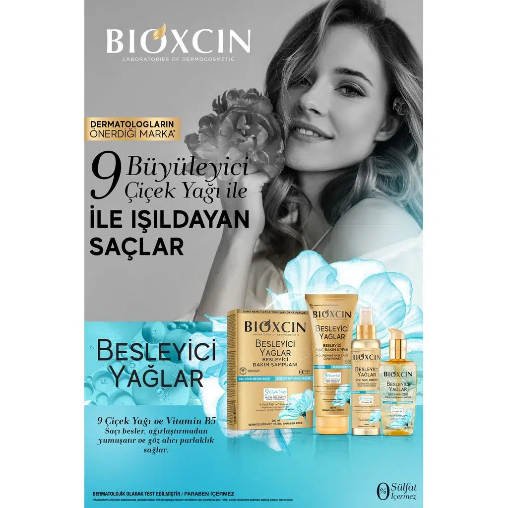 Bioxcin Besleyici Yağlar Serisi, kuru, mat ve yıpranmış saçlar için özel olarak geliştirilmiş, doğal içeriklerle zenginleştirilmiş bir saç bakım serisidir. Saçları derinlemesine nemlendirir, besler ve ilk kullanımdan itibaren daha parlak, daha yumuşak bir görünüm sağlar.