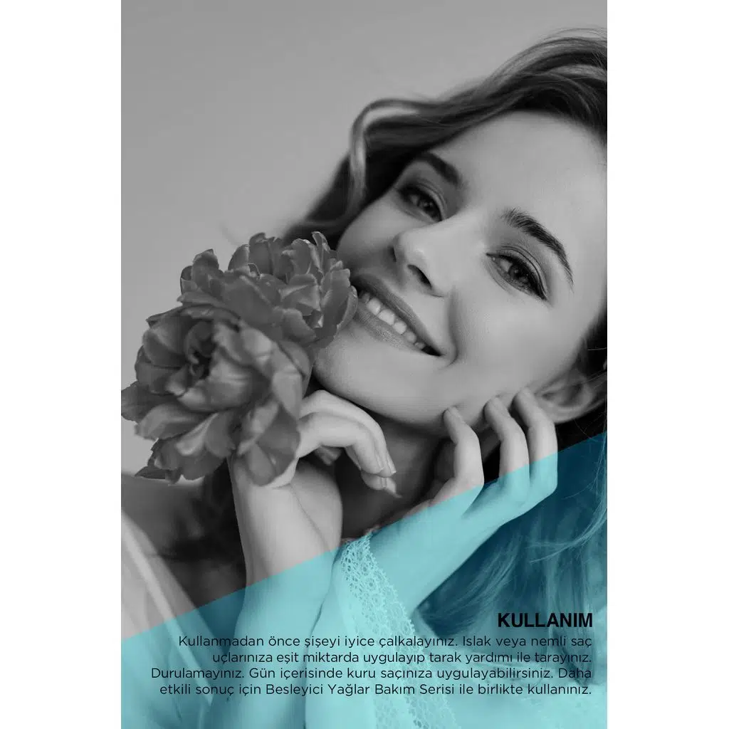 İçeriğindeki 9 değerli çiçek yağı (yasemin, lavanta, ıtır, lotus, manolya, hanımeli, portakal çiçeği, monoi ve gül) sayesinde saçlara derin besleyicilik ve canlılık verir.