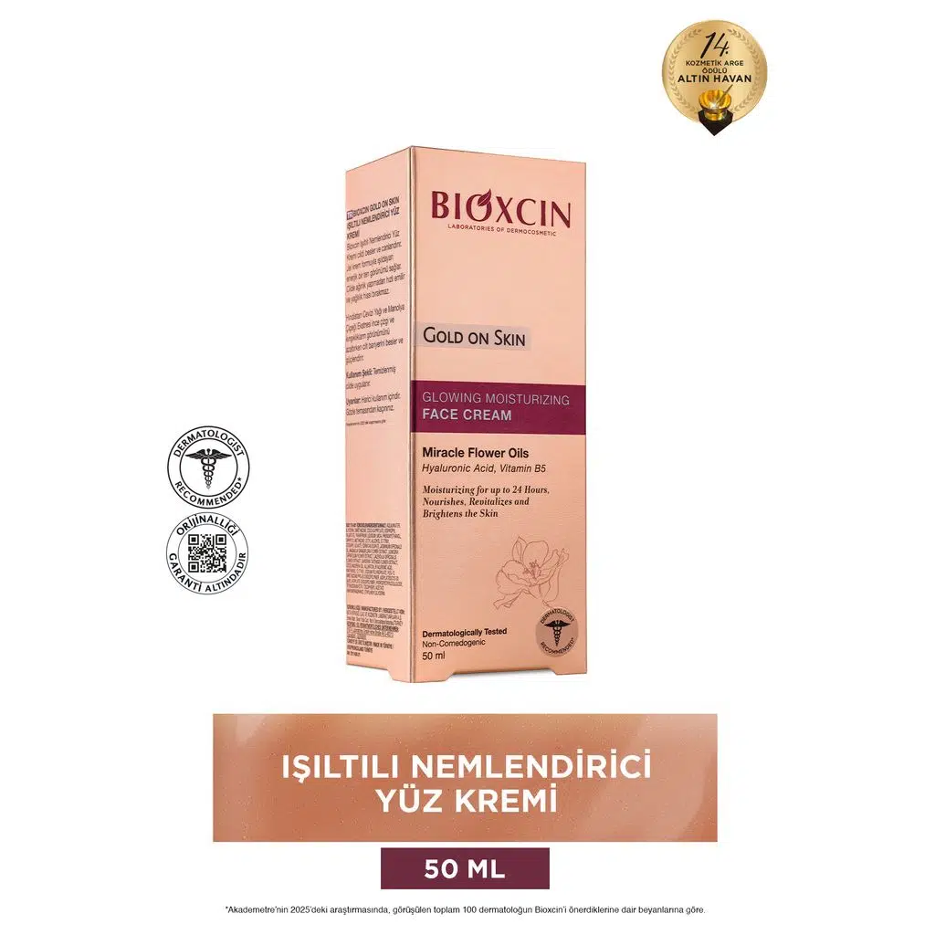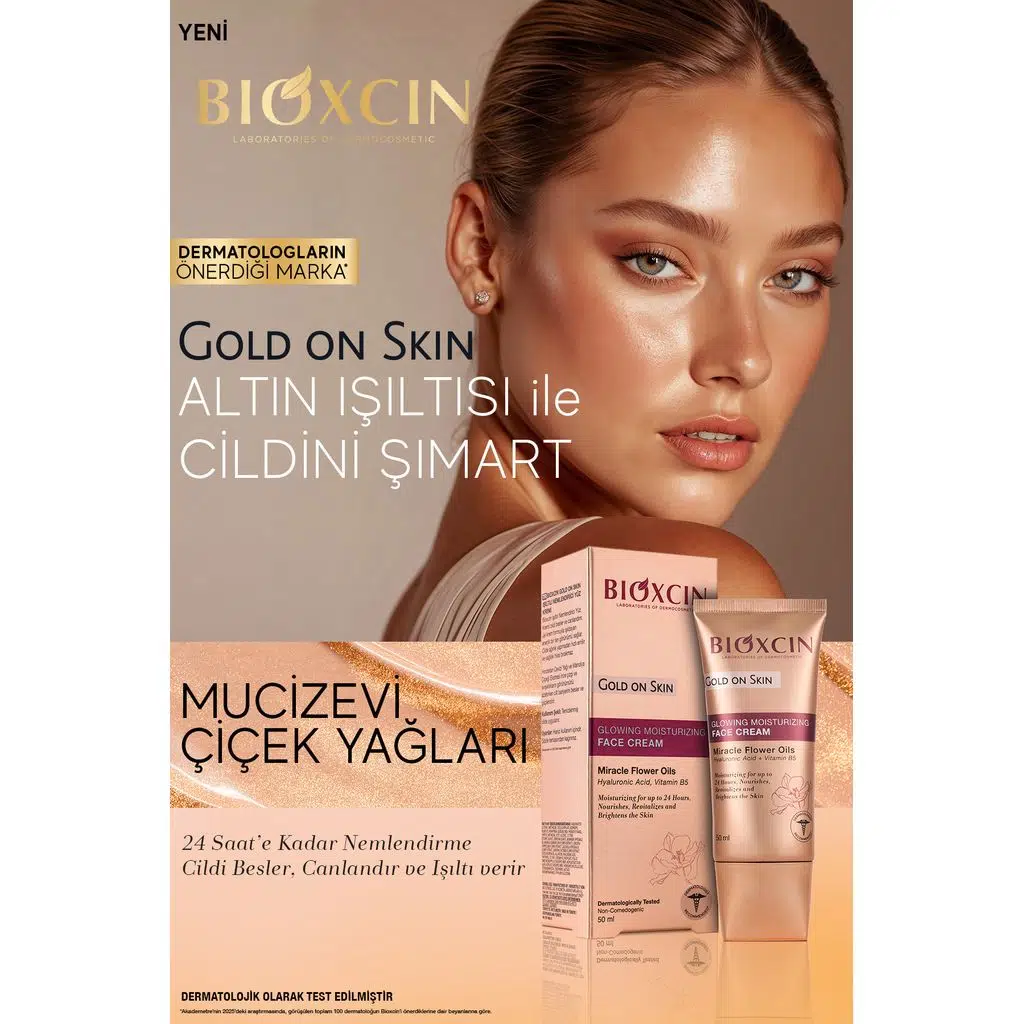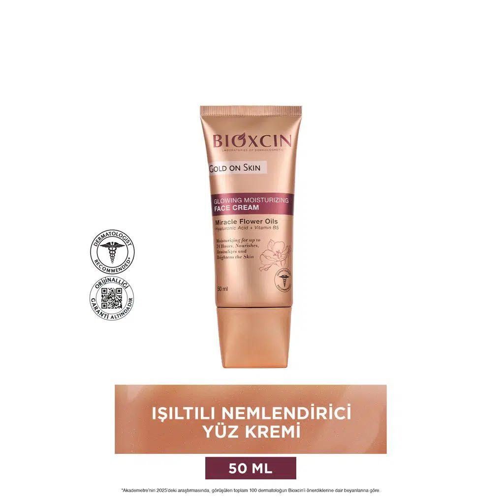 Bioxcin Gold On Skin Işıltılı Yüz Kremi, cilde hem yoğun nem hem de doğal bir ışıltı kazandırmak üzere geliştirilmiş özel bir bakım kremidir.