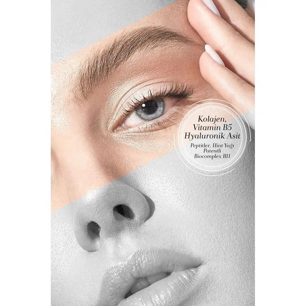 İçeriğinde yer alan Hedera Helix (Sarmaşık) Yaprağı Ekstresi, BioComplex B11, Hyalüronik Asit, Biotinoil Tripeptit-1, Hidrolize Kolajen, Hint Yağı, Gliserin, B5 Vitamini ve PRODEW® 500 (Amino Asit Kompleksi) ile kaş ve kirpikleri besler, dolgunluk ve canlılık kazandırır.