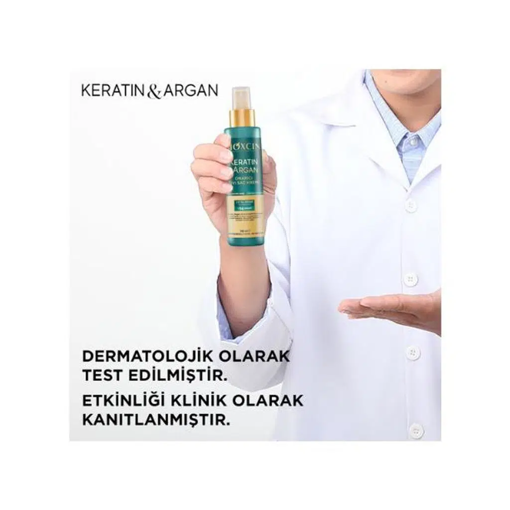 Yıpranmış, mat ve nemini kaybetmiş saçlar için özel olarak geliştirilen Bioxcin Keratin & Argan Onarıcı Sıvı Saç Kremi; hidrolize keratin ve argan yağı ile saçı derinlemesine besler, nemlendirir ve doğal parlaklığını geri kazandırır. Patentli Biocomplex B11 formülü saç dökülmesine karşı destek sağlar. Hipoalerjeniktir, parfüm kaynaklı alerjen içermez. Tüm saç tipleri için uygundur. Durulama gerektirmez.