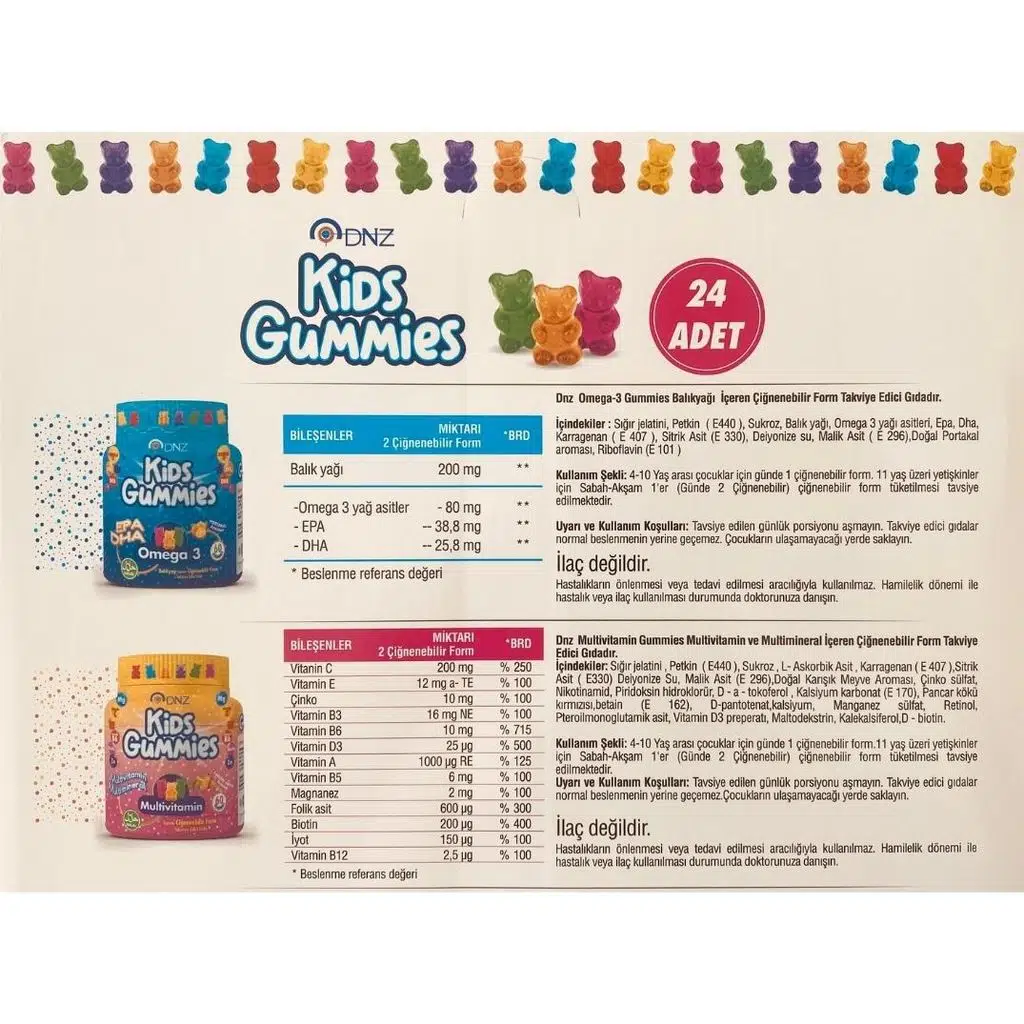 | Etiketler | Dnz Kids Gummies Omega 3 Balık Yağı 12 Adet + Multivitamin 12 Adet Stant |
