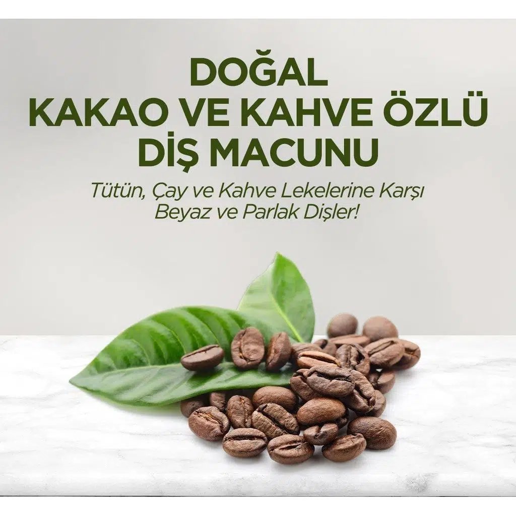 İçeriğindeki doğal kakao ve kahve özleri ile tütün, çay ve kahve lekelerine karşı mükemmel ağız bakımı uygularken dişlerinizi beyazlatır ve parlatır.