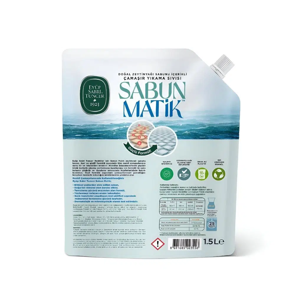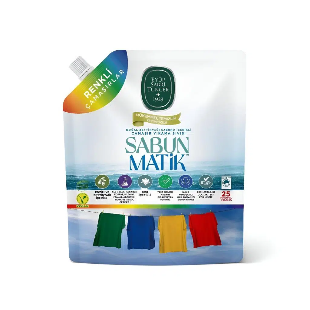 Eyüp Sabri Tuncer - Sabun Matik™ Doğal Zeytinyağı İçerikli Çamaşır Yıkama Sıvısı Renkliler 1,5 lt