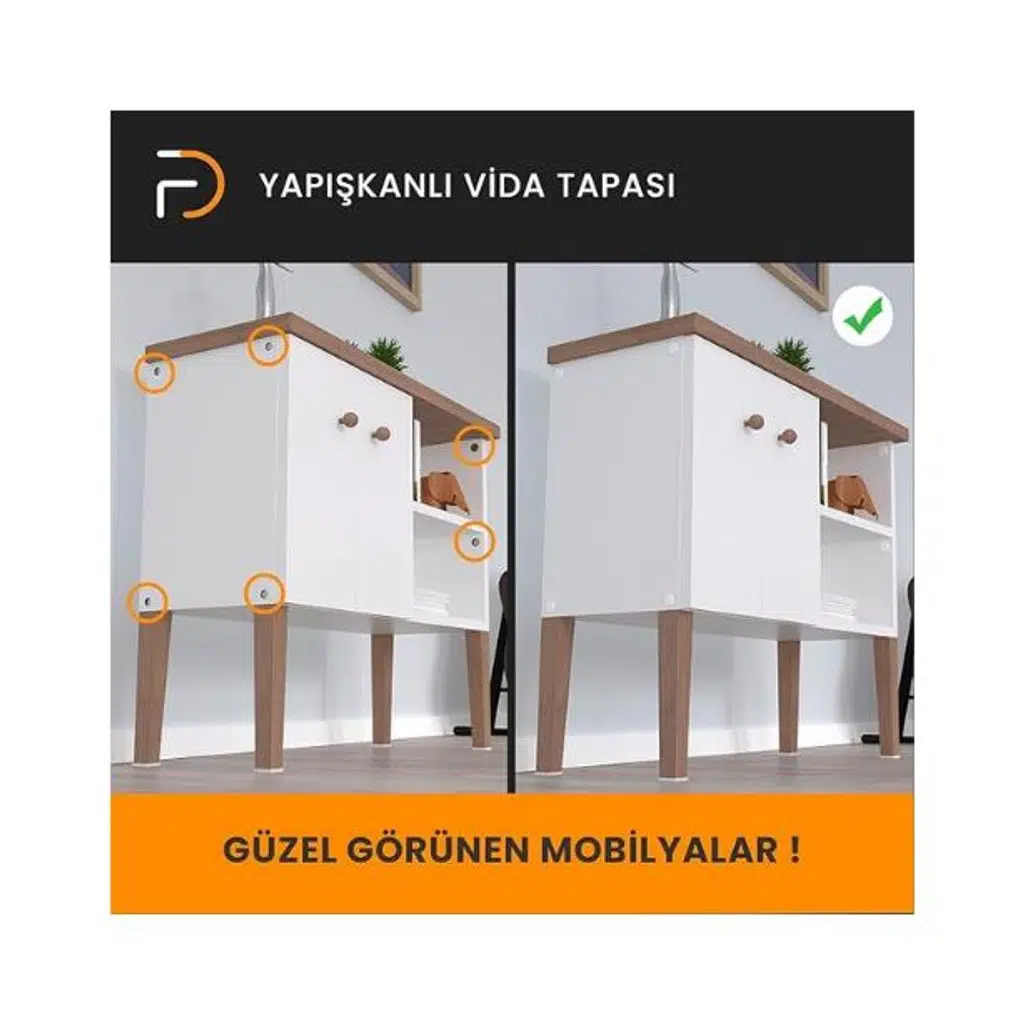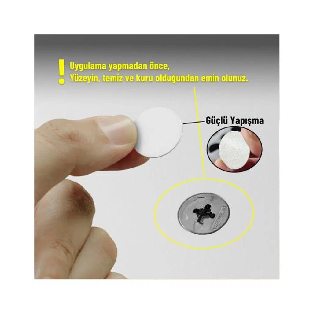 Furndiy Kendinden Yapışkanlı Vida Tapası Beyaz - 21 mm Yuvarlak, 50 Parça