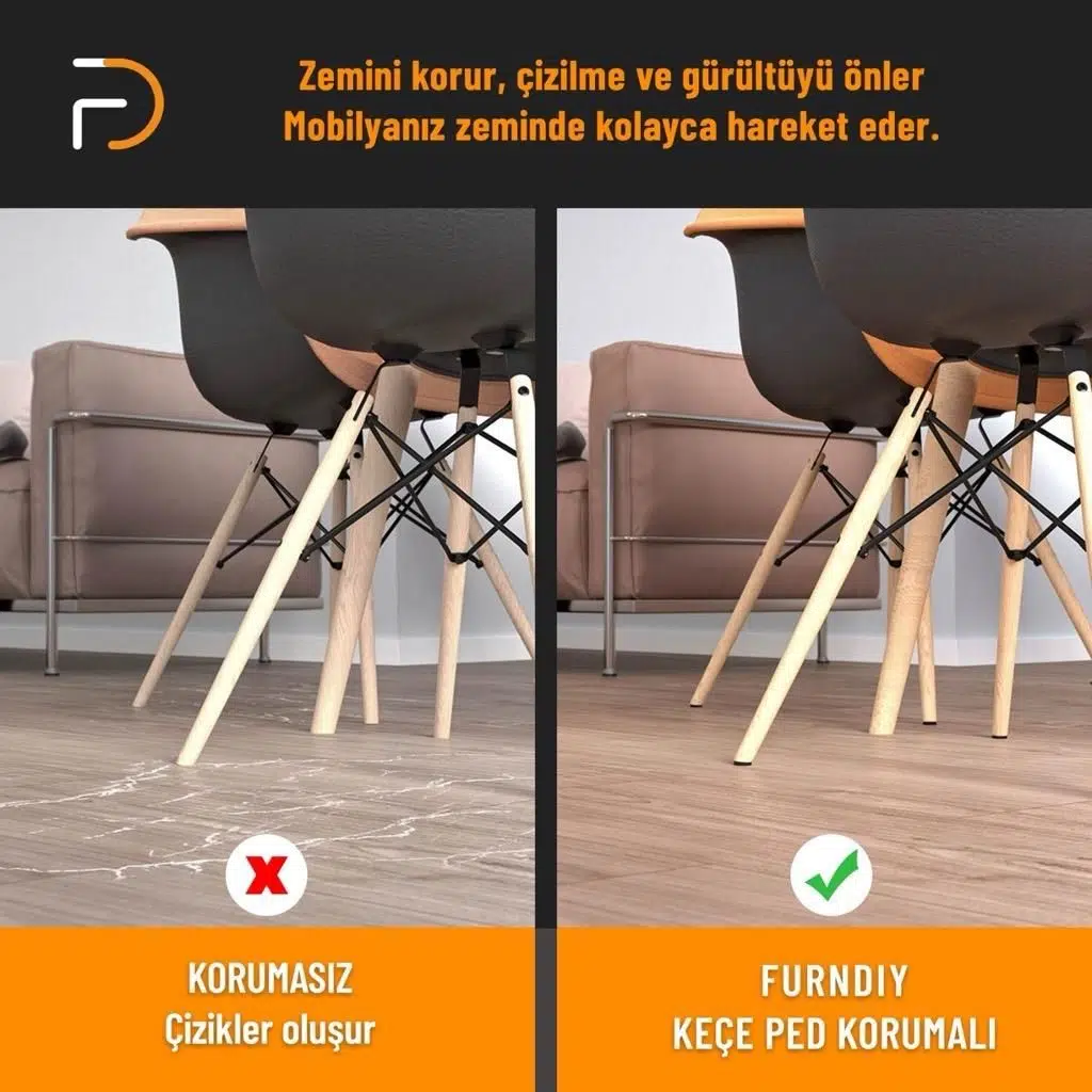 Furndiy Kendinden Yapışkanlı Yuvarlak Keçe Pedler, mobilya ayaklarınız için ideal bir koruma sağlar. Çizilme ve gürültüyü en aza indiren bu keçe pedler, mobilyalarınızın en ufak hareketlerinde bile oluşan sinir bozucu sürtünme sesini önler. Yüksek kaliteli yapışkanıyla uzun süreli kullanım sağlar ve 30mm boyutuyla sandalye, masa ve diğer mobilyalarda kolayca kullanılabilir. Mobilyalarınızın zeminle temasını yumuşatan bu keçe pedler, zeminlerinizin zarar görmesini engeller.