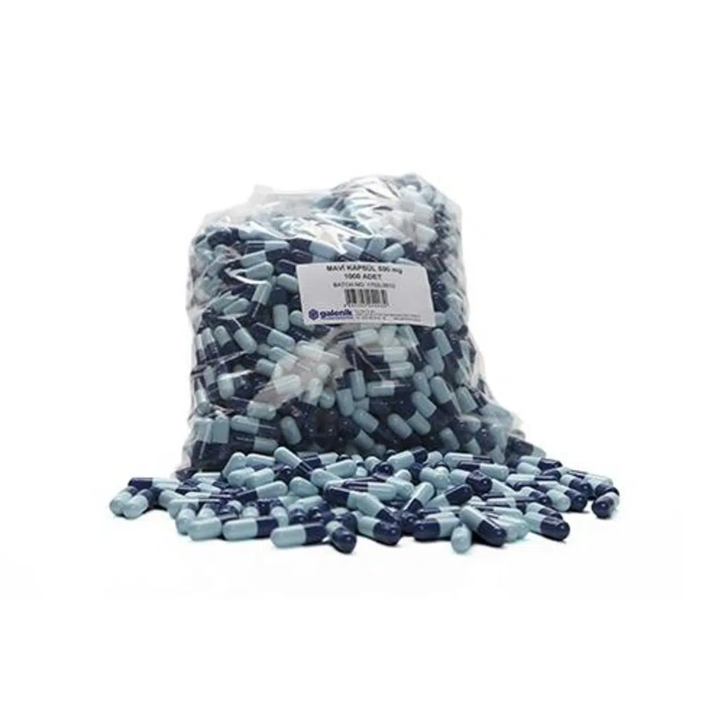 | Etiketler | Galenik Mavi - Beyaz Jelatin Kapsül 500 mg No: 0 - 1000 Adet ( Midede Çözünen ) |