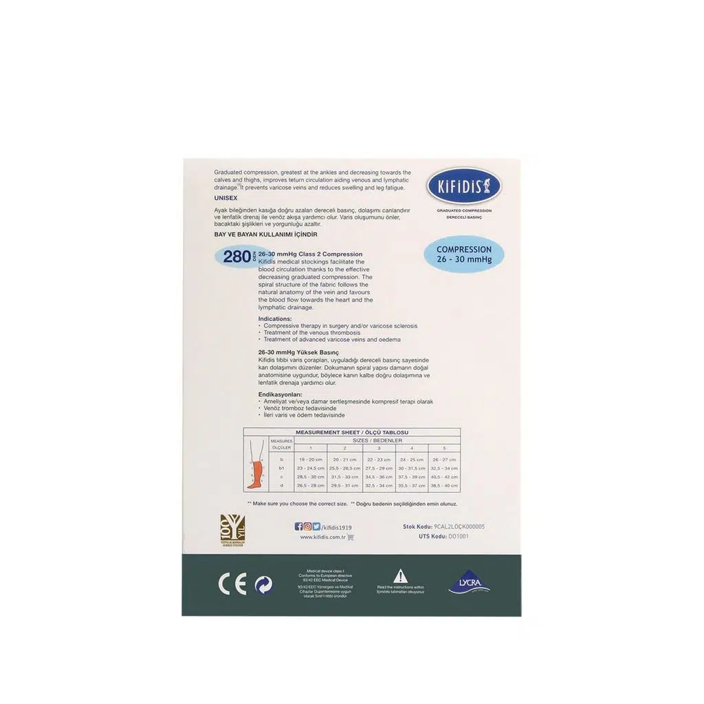 | Etiketler | Kifidis 280 Den 26-30 mmHg Basınç Unisex Diz Altı Burnu Açık Varis Çorabı Bej No: L |