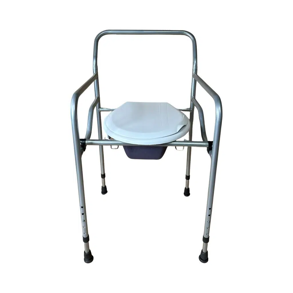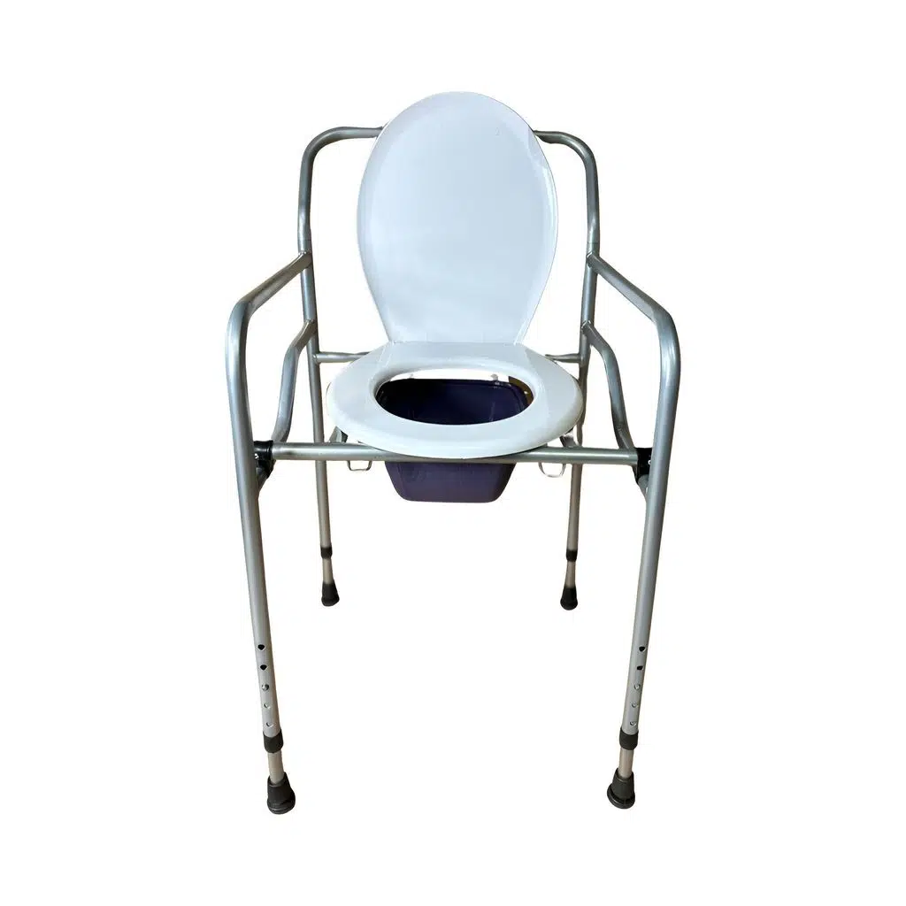Seyyar katlanabilir hasta, yaşlı tuvalet sandalyesi klozet li wc li oturak hafiftir ve katlanabilme özelliği sayesinde kolay taşınabilir, yer kaplamaz. Tuvalet aparatlı sürgülü dür. Hastayı kaldırmadan sürgüyü çıkarma kolaylığı sayesinde pratiktir. Hastanın boyuna göre 4 kademe yükseklik ayarı vardır dört adet kaymayı önleyici lastikleri sayesinde kayma problemi yapmaz. Alafranga tuvaletlerin üzerine konabilme özelliği sayesinde hasta ihtiyacını direkt tuvalete görebilir.