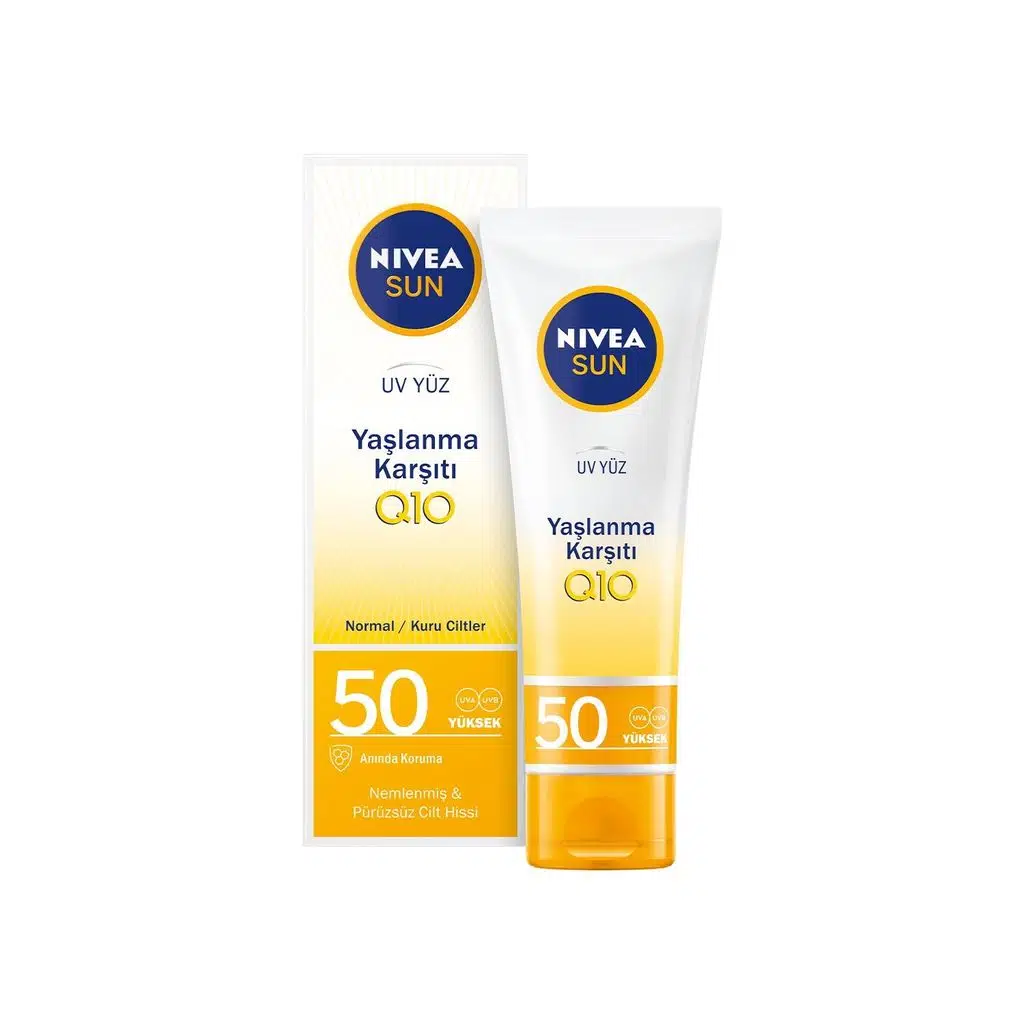 NIVEA SUN Yaşlanma Karşıtı Q10 SPF 50, cildinizi güneşin zararlı etkilerine karşı korurken, aynı zamanda yaşlanma belirtileriyle mücadele eder ve cildinizi nemlendirir. Günlük kullanım için ideal olan bu ürün, cildinizin sağlıklı ve genç kalmasına yardımcı olur.