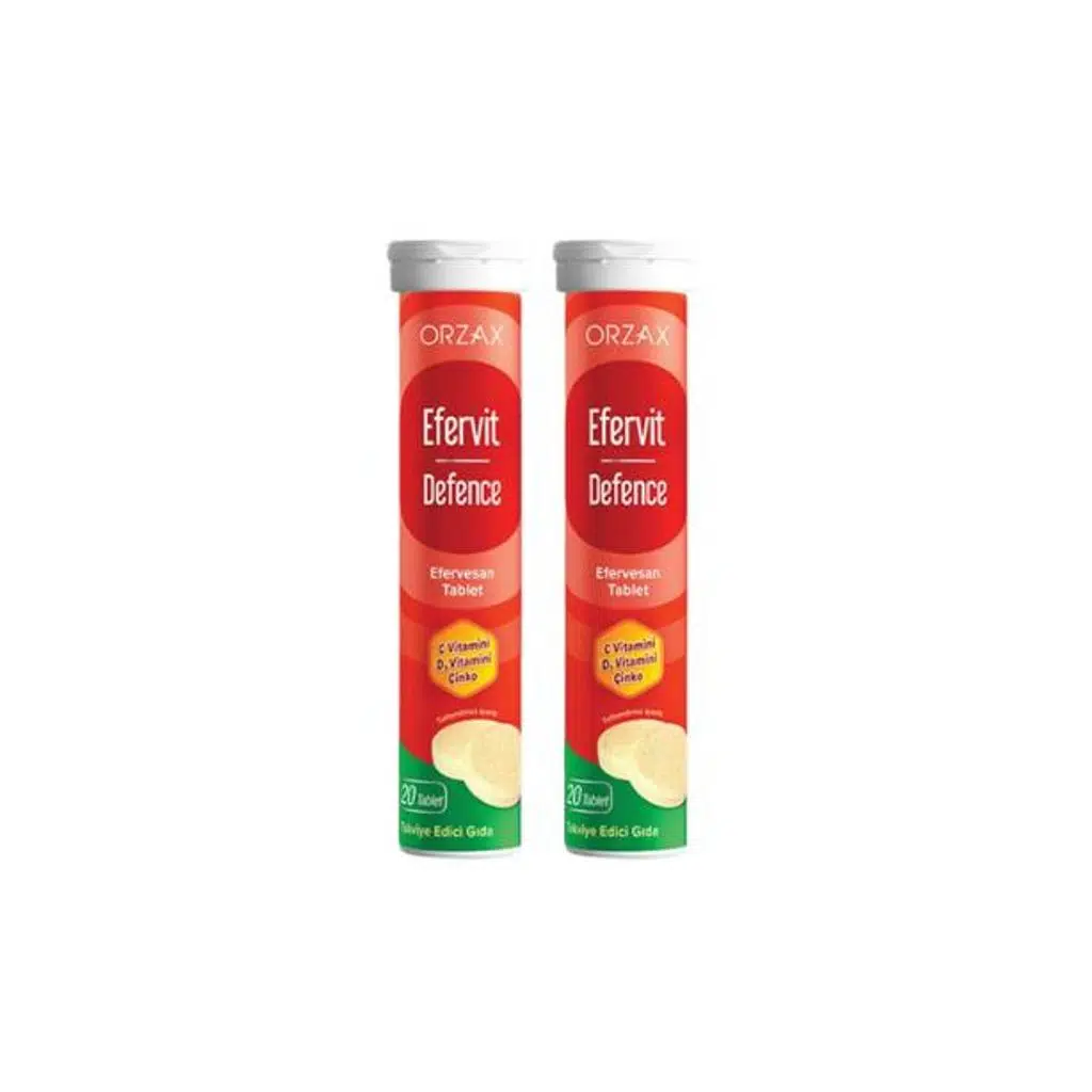 Efervit Defence, C vitamini, çinko ve D3 vitamini içeren, kolay çözünebilen ve tortu bırakmayan formülüyle dikkat çeken efervesan tablet takviyesidir. Ferahlatıcı tadı ve güzel kokusuyla tüketimi kolaylaştırır. Günlük bağışıklık desteği arayan bireyler için ideal bir seçenektir.