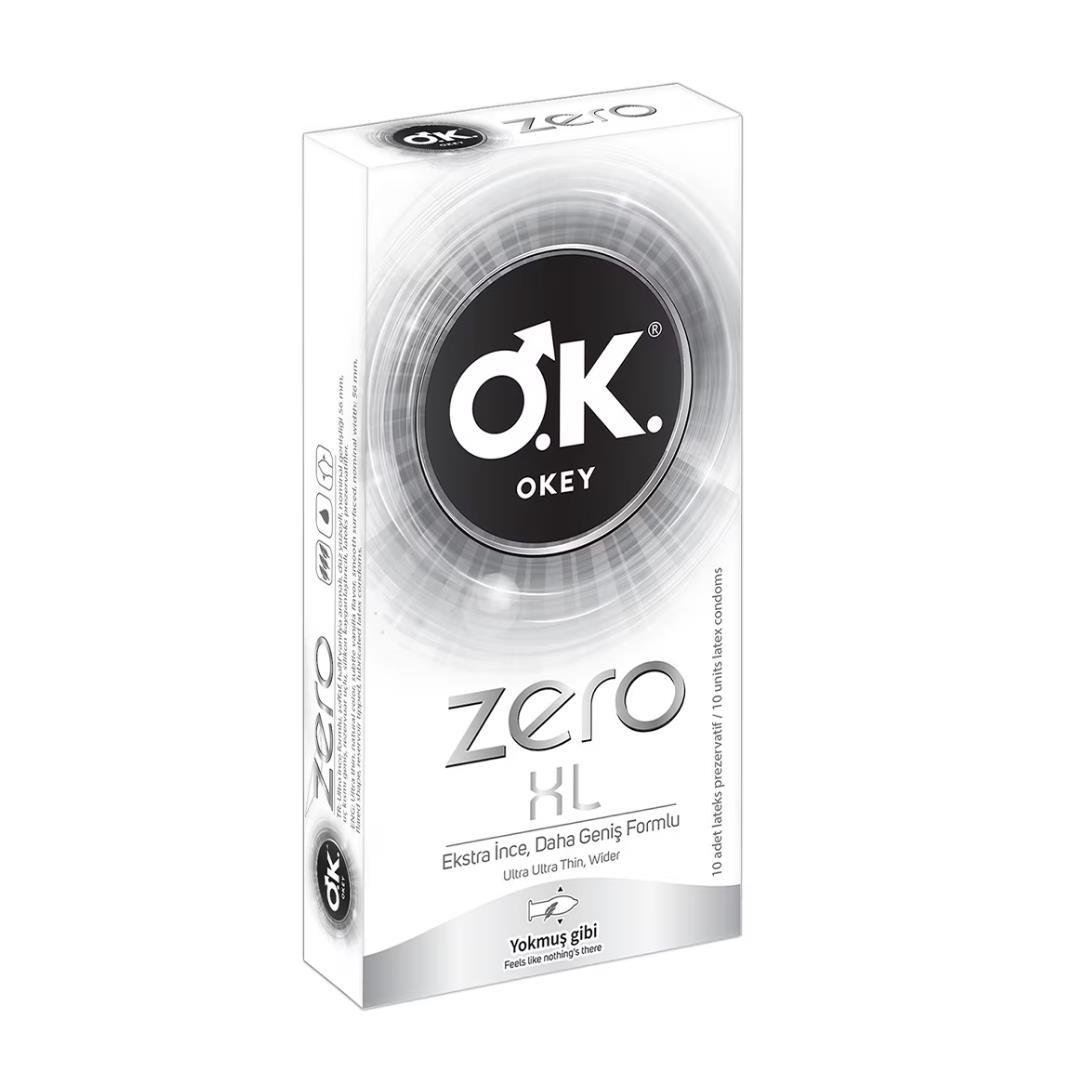 Okey Zero XL Prezervatif 10'lu O KADAR İNCE Kİ SANKİ YOKMUŞ GİBİ Ultra ince ve geniş formlu, şeffaf, hafif vanilya aromalı, düz yüzeyli, nominal genişliği 56 mm, uç kısmı geniş, rezervuar uçlu, silikon kayganlaştırıcılı, lateks prezervatifler.