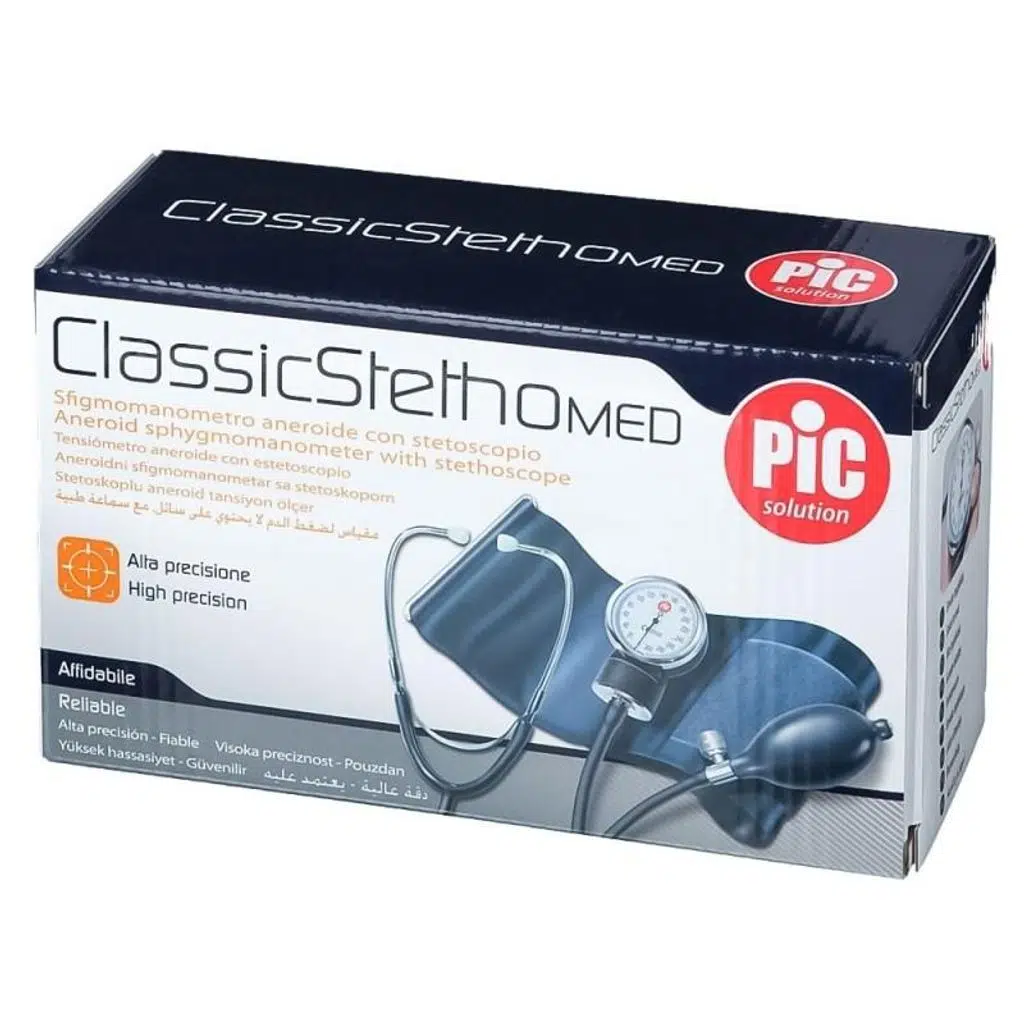 Pic Solution Mekanik Tansiyon Aleti Classic Steteskoplu. Hem profesyonel hem de evde kullanıma uygun mekanik tansiyon aleti.Güvenilir berrak ve kolay okunabilen kadran"50mm".Velctro cırt yapışkana sahip konforlu manşeti sayesinde basit ve hızlı uygulama.Manşet boyu 22 - 33cmTansiyon aleti taşıma ve saklama kolyalığı sağlamak için çanta ve steteskopu ile birlikte.2 yıl garanti.Pic Solution Classic Stethomed Manual Tansiyon Aleti