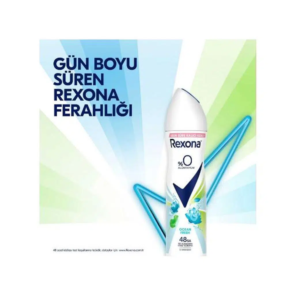 Rexona Ocean Fresh, alüminyum içermeyen özel formülüyle ter kokusuna karşı 48 saat etkili koruma sağlar. Temiz ve ferah kokusuyla gün boyu tazelik hissi sunarken, kıyafetlerde iz ve leke bırakmaz. Hareketli anlarınızda size eşlik eden Ocean Fresh, hafif ve özgür hissetmeniz için ideal bir tercihtir.