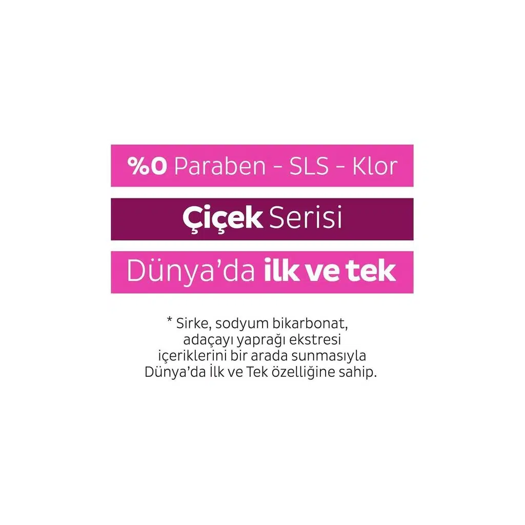 *Sirke, sodyum bikarbonat, adaçayı yaprağı ekstresi içeriklerini bir arada sunmasıyla Dünya’da ilk ve tek özelliğe sahip