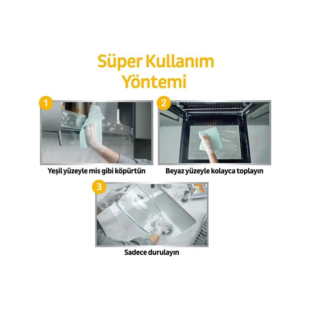 Sleepy Easy Clean yüzey temizlik havlusu, mutfakta süper pratiklik arayanlara Sleepy Easy Clean Süper Yağ Çözücü’yü geliştirdi. İnatçı kirlere karşı içeriğindeki beyaz sirke, karbonat, limon tuzu ile mükemmel temizliğin doğal formülünü sunuyor. Deterjan katkılı lifli havlu Süper yağ çözücü, Beyaz Micro Cyclone ve Yeşil Macro Fiber’den oluşan çift taraflı yüzey yapısına sahip. Yeşil Macro Fiber yüzey aktif köpüklü formülü ile zor kirleri kolayca sökerken, Beyaz Micro Cyclone yüzey kirleri içine hapsediyor. Yeşil yüzeyi ile köpürtme, beyaz yüzeyi ile toplama ve ardından durulama ile temizlik yalnızca 3 adımda sona eriyor.
