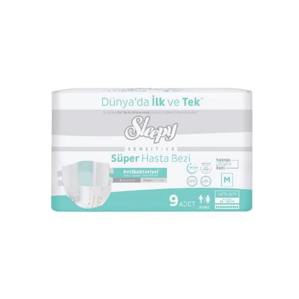| Etiketler | Sleepy Süper Hasta Bezi Antibakteriyel Medium Boy M 85 - 125 cm 9 Adet |