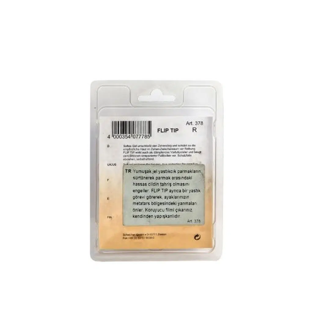 Solos Flip Tip jel koruyucular, parmak arası terlik ve sandalet kullanımında oluşabilecek sürtünme ve tahrişleri önlemeye yardımcı olur. Yumuşak jel yapısıyla, hassas cilt bölgelerini korur ve oluşabilecek kızarıklık, acı ve yara riskini azaltır. Aynı zamanda metatars bölgesinde yastıklama etkisi sağlayarak ayak altındaki yanmaları ve rahatsızlık hissini önler.