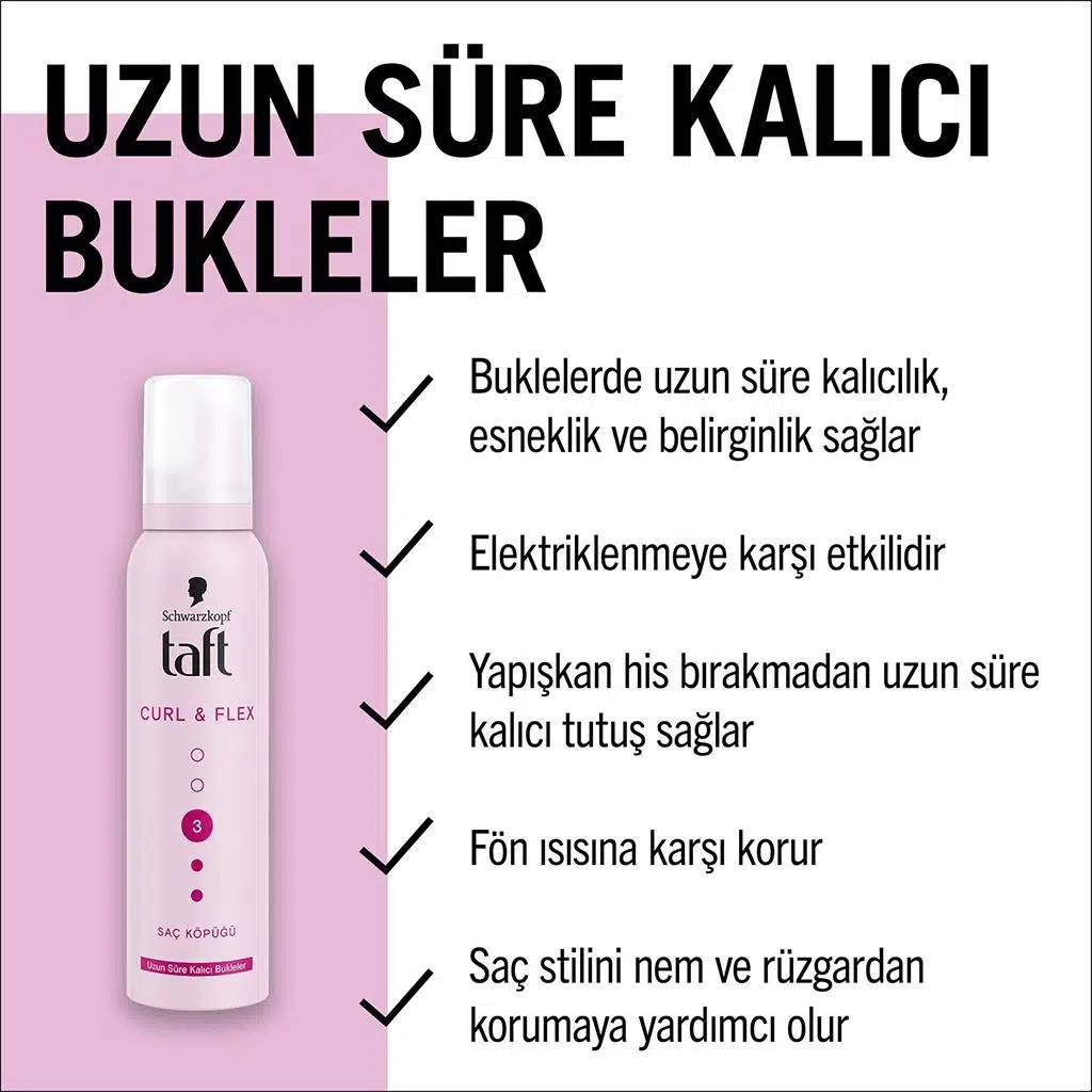 | Etiketler | Taft Saç Köpüğü Curl & Flex No: 3 Uzun Süre Kalıcı Bukleler 150 ml |