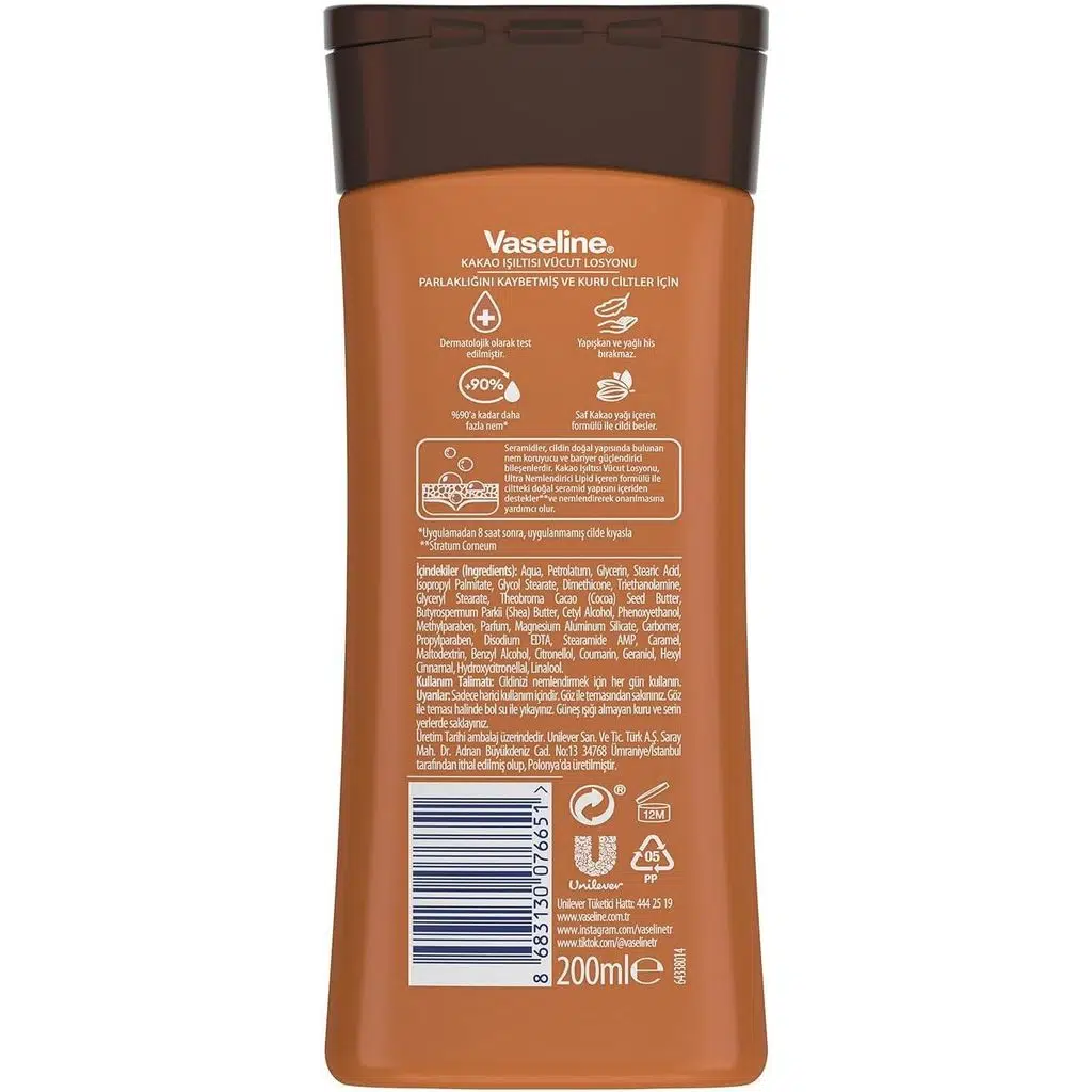 | Etiketler | Vaseline Intensive Kakao Işıltısı Besleyici ve Yumuşatıcı Losyon 200 ml |