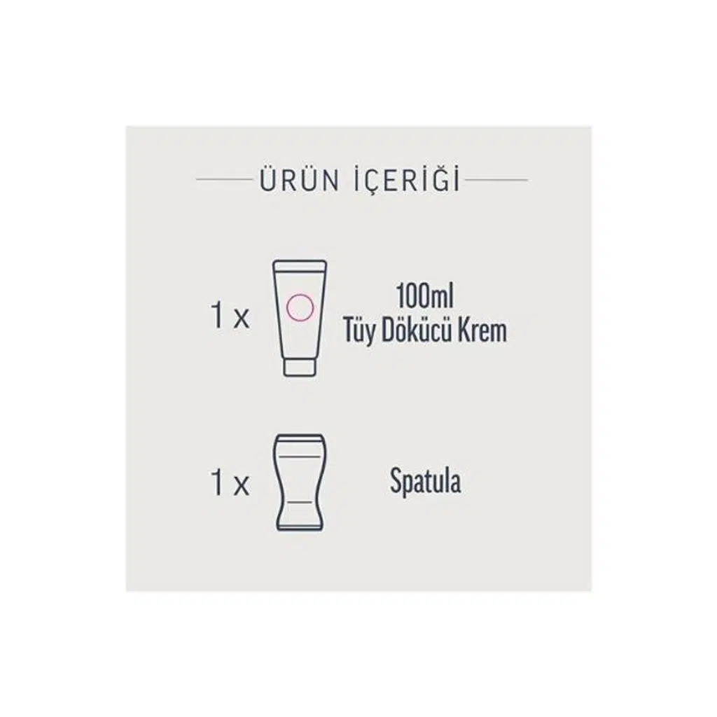 Krem, spatula yardımıyla tüyleri tamamen kaplayacak şekilde cilde uygulanır. 3 dakika sonra küçük bir alan test edilir. Tüyler kolayca çıkıyorsa uygulama tamamlanır. Gerekirse toplam 10 dakikayı geçmeyecek şekilde bekletilir. Ardından su ile durulanır ve cilt kurulanır.
