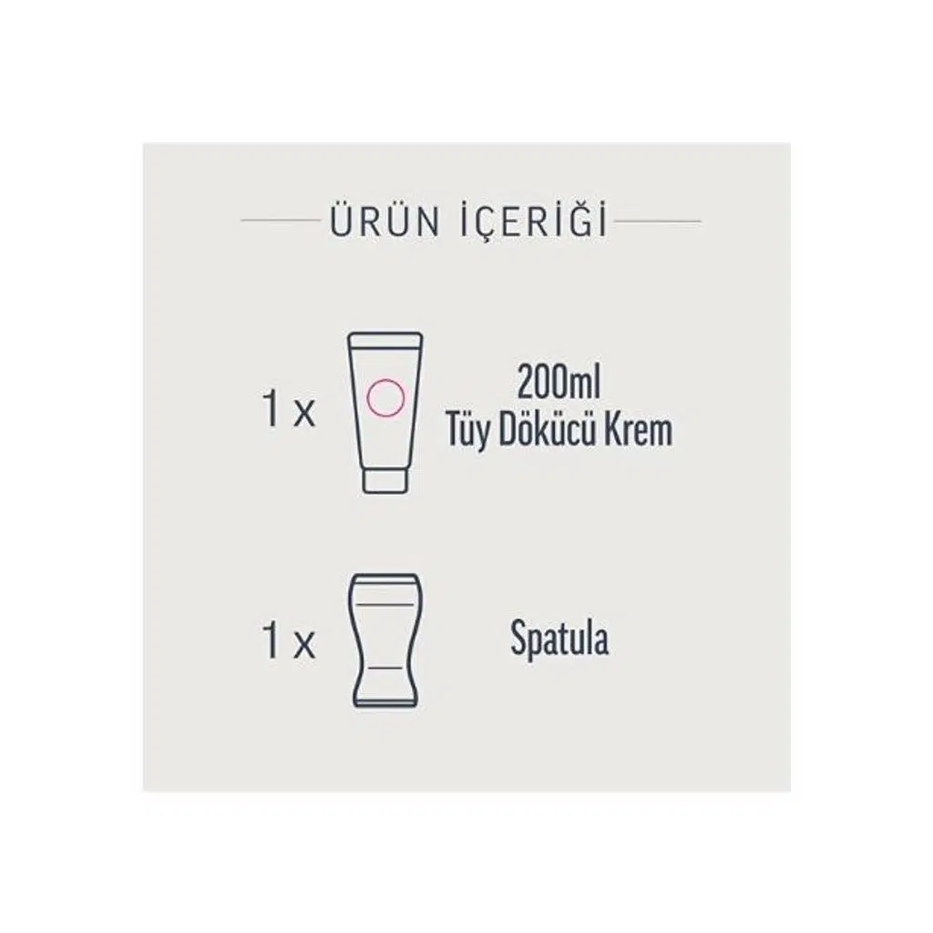 Kremi spatula ile tüyleri tamamen kapatacak şekilde cilde uygulayın. 3 dakika sonra küçük bir alanı test edin. Tüyler kolayca çıkıyorsa tüm bölgeyi temizleyin. Gerekirse toplam 6 dakikayı geçmeyecek şekilde bekletin. Ardından suyla durulayıp kurulayın.