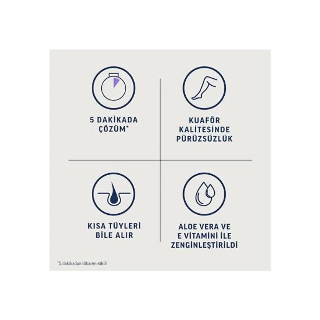 Kremi doğrudan cilde püskürtün. Tüylerin üzerini tamamen kaplayacak şekilde uygulandığından emin olun. 3 dakika bekledikten sonra küçük bir alanı test edin. Tüyler kolayca çıkıyorsa kalan bölgeyi spatula ile temizleyin. Gerekirse toplamda 6 dakikayı geçmeyecek şekilde bekletin. Son olarak suyla durulayıp kurulayın.