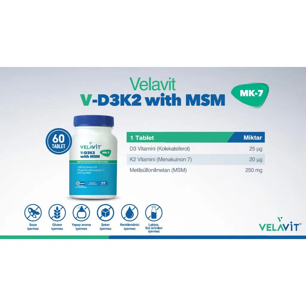 | Etiketler | Velavit V-D3K2 with MSM 60 Tablet |